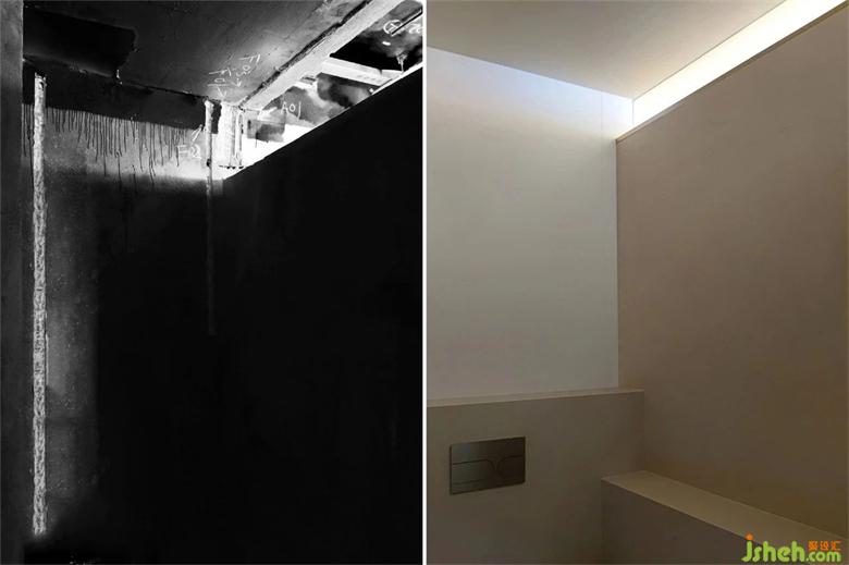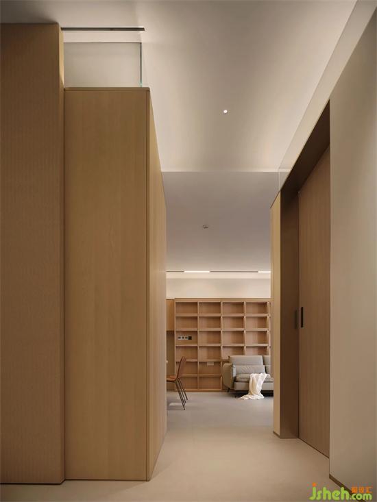 这个项目的设计核心,正是通过墙体不到顶的手法,来为光留出一道空隙。深圳天鹅湖花园家装设计从玄关开始,步入式鞋帽间、厨房、双卫的顶部均采取了统一手法,从建筑的视角为室内创造了光的环境,使其在白天不开灯的状态下也不影响使用。