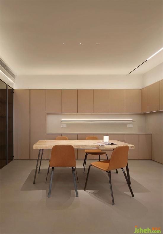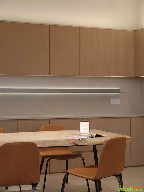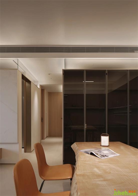 Another advantage of not topping the wall is that equipment such as central air conditioning are placed outside the living and dining room area. In this way, the ceiling does not need to be shaped, and the height of the space can be maximized.
