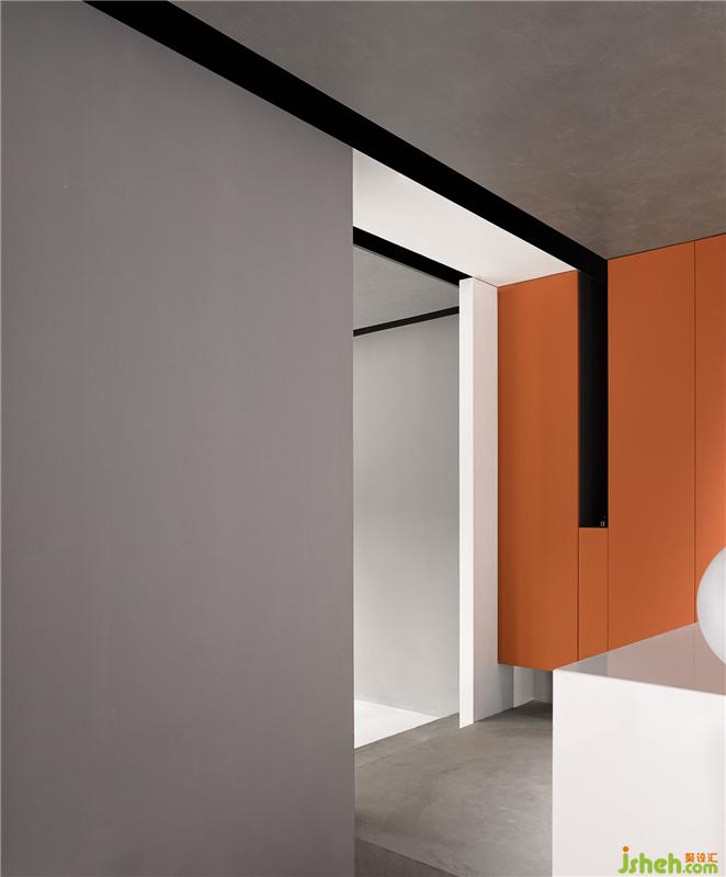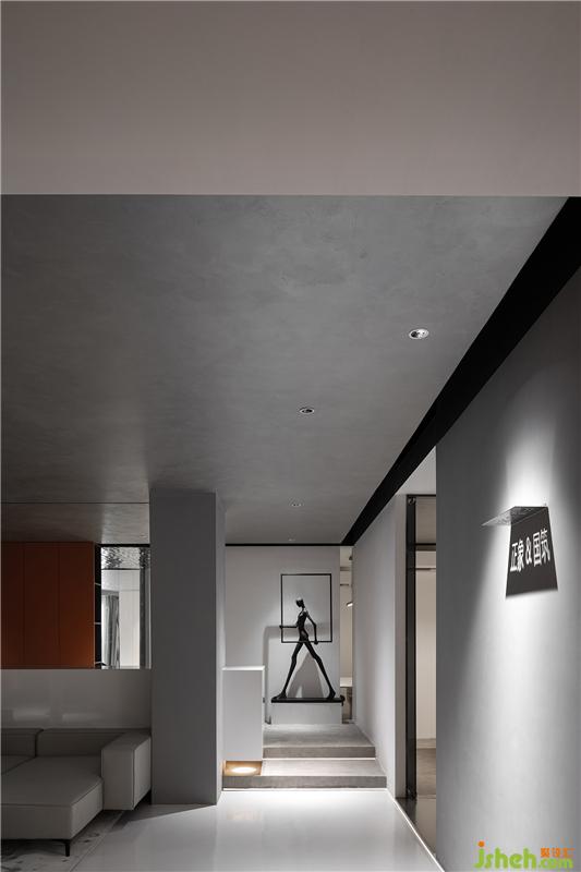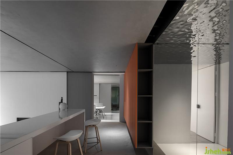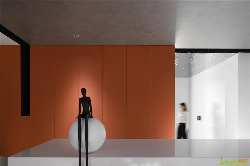 游走于灰白黑之间,一抹橙黄便成为点睛之笔,活跃跳脱,是为创意支点,灵感源头。亦作为整个办公设计空间灵魂之所在。