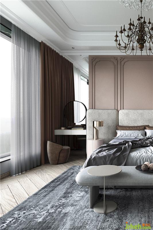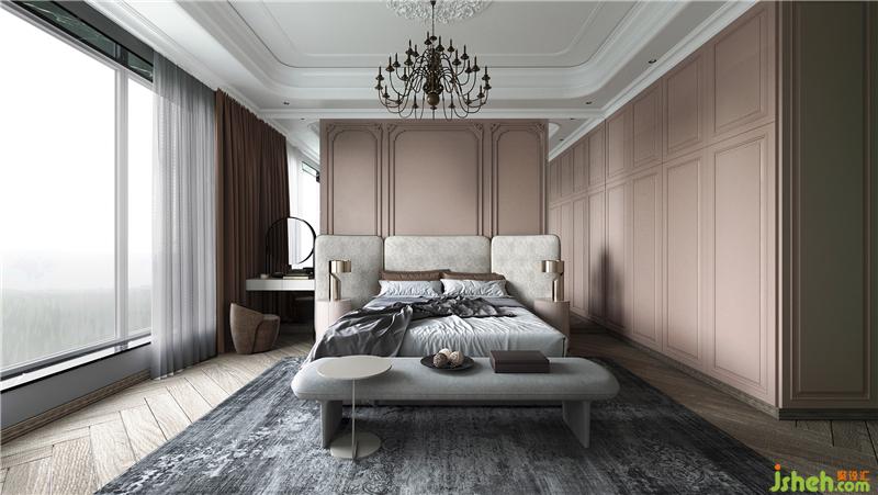 本案主卧采用奢阔卧室+步入式衣帽间+独立主卫的套房式装修设计,为客户定制尊崇居住礼遇。