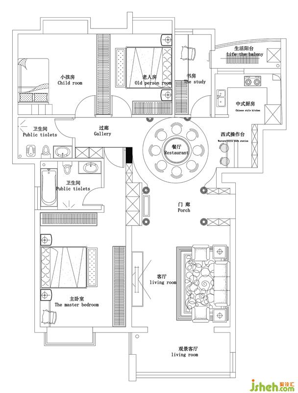 约168m²的空间,四房二厅,夫妻俩+两个孩子,偶尔过来小住的老人;男主人喜欢酒吧,女主人想要多多的柜子。这样一个幸福之家,如何设计才能满足业主的要求?
