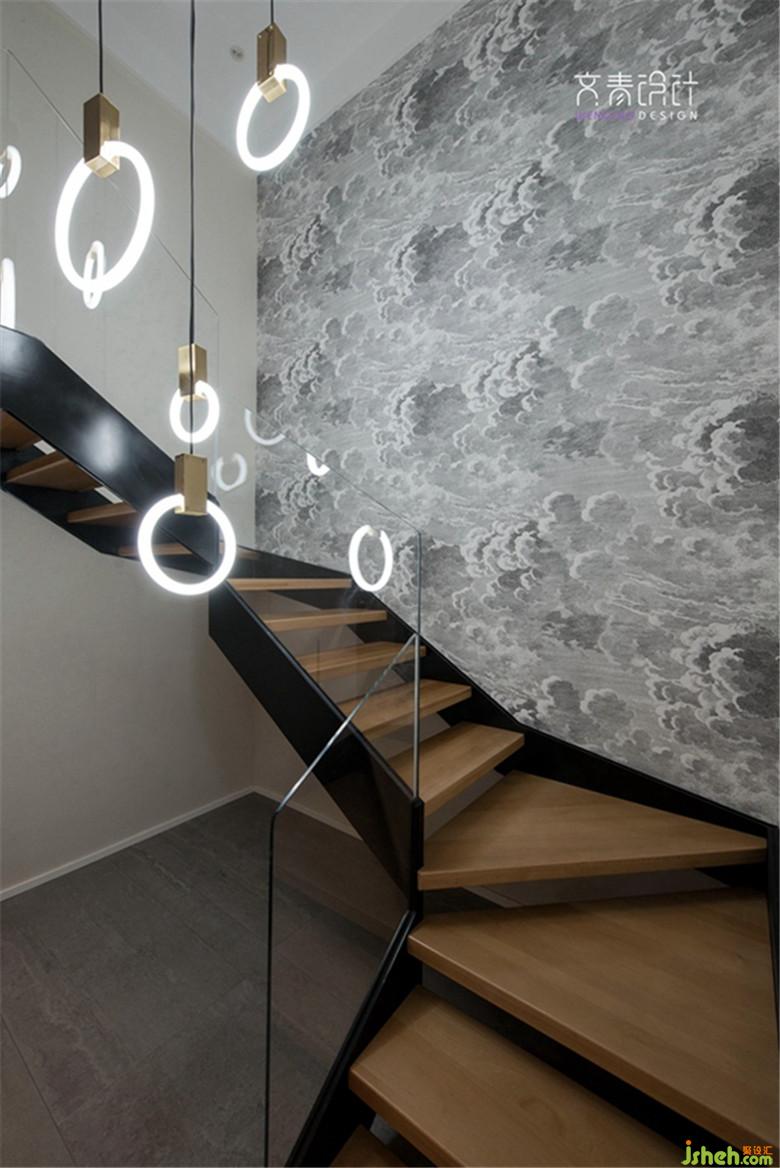 二楼环形的镂空设计,让在二楼的人可以看见楼下。
