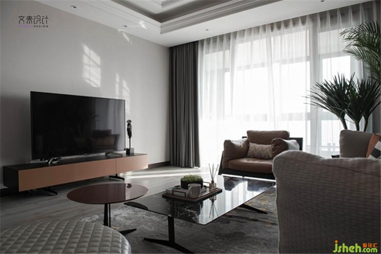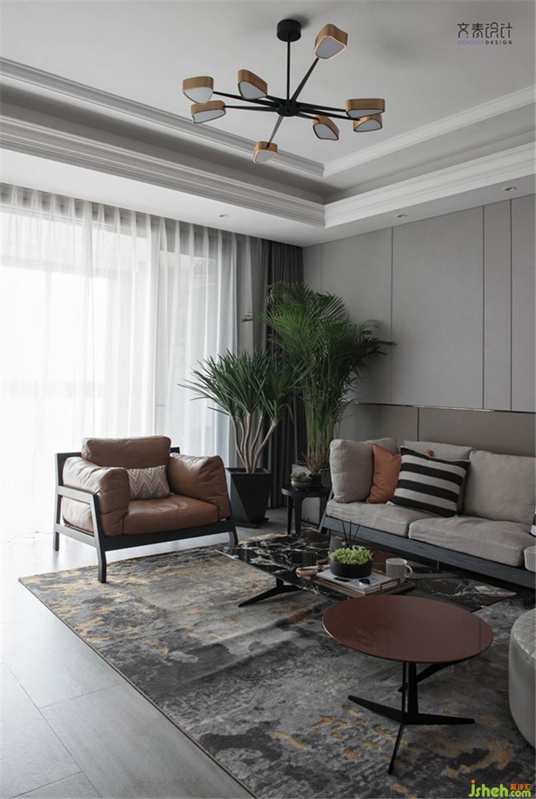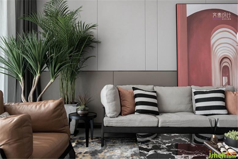 客厅背景墙硬包用不规则比例划分出线条,变化得更具层次感。