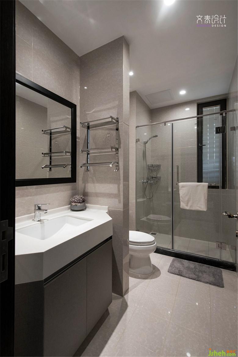 地砖,由原先的米白色地砖拼接黑色地砖改成了浅灰色木纹砖,去掉了黑色线条和不必要空间区隔线条,使得整个空间更加流畅。。