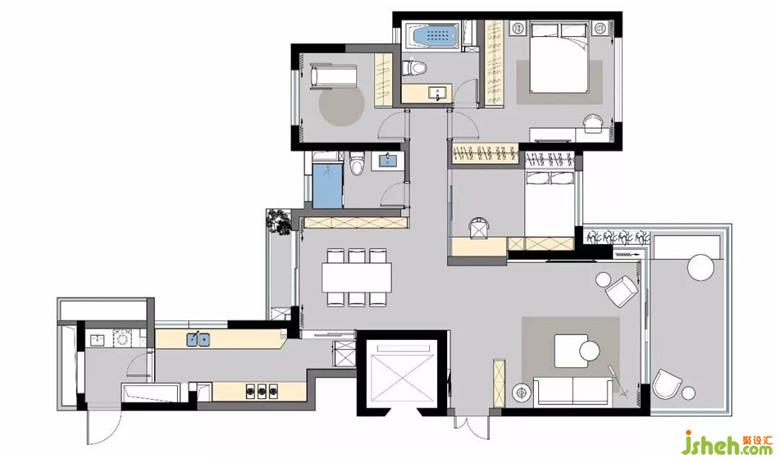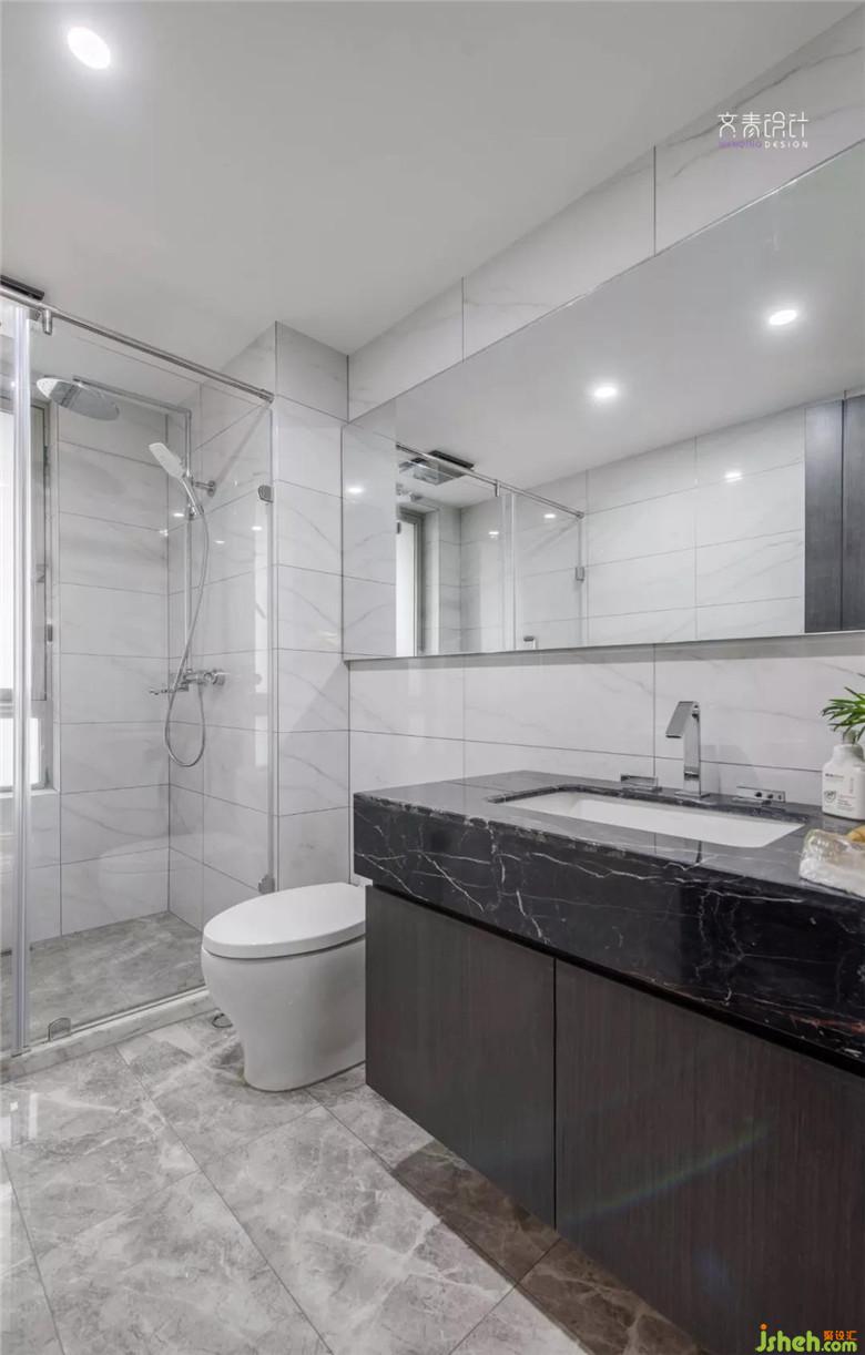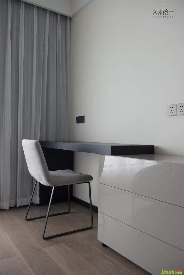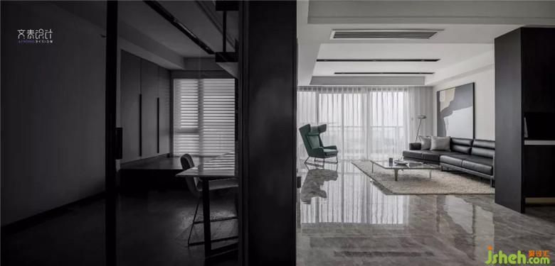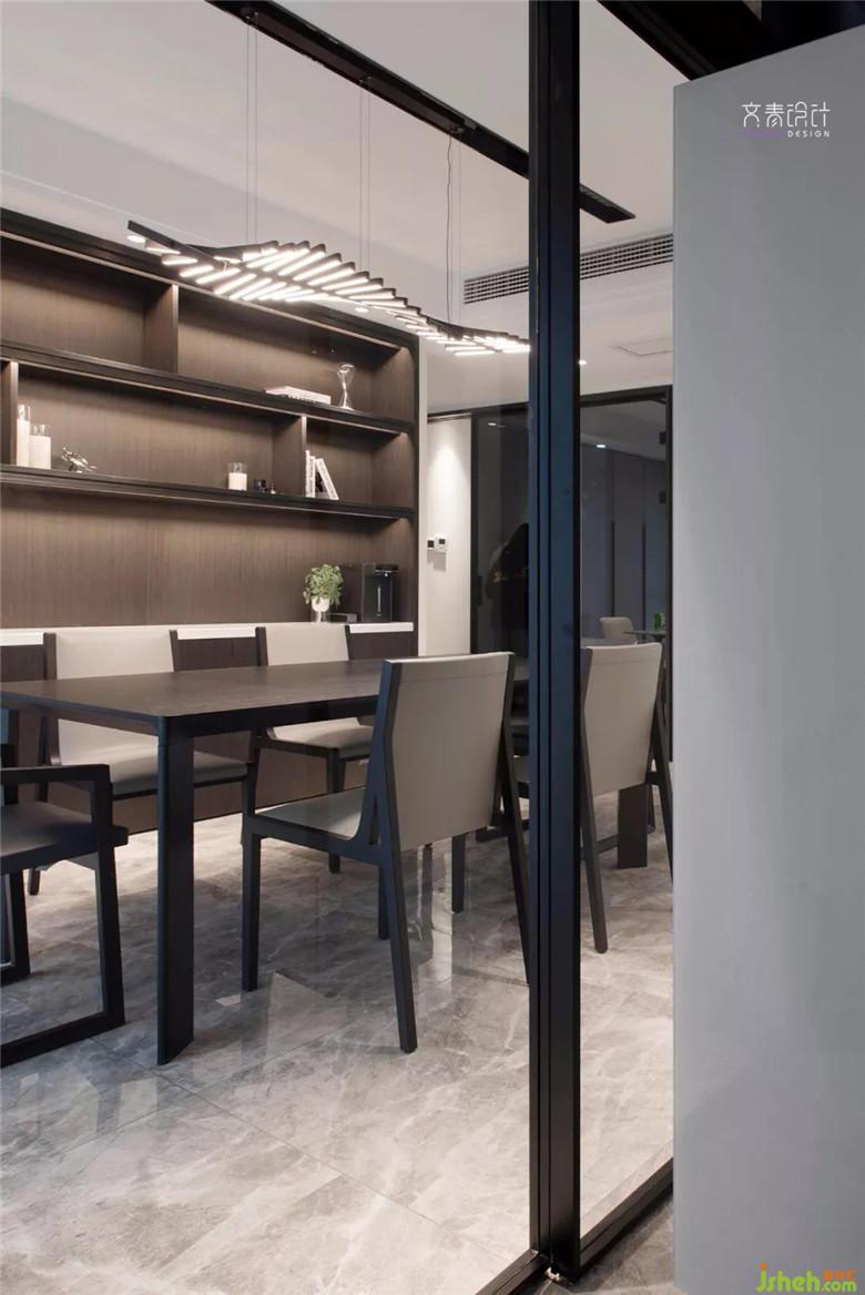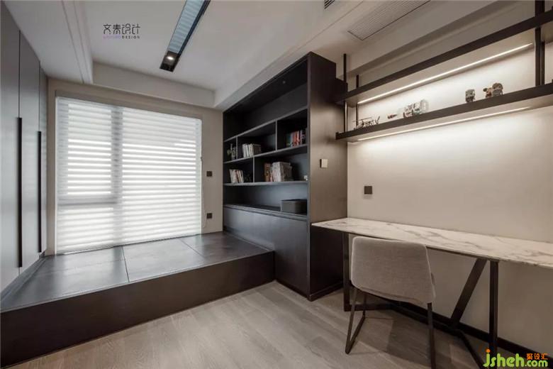 书房处用黑玻移门,营造一个与外界视线隔绝的让人专心工作的区域。