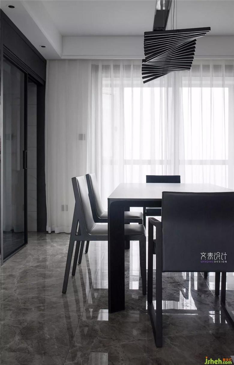 不同于现下流行的细脚桌,这里选了带有台式风的餐桌,厚重静谧