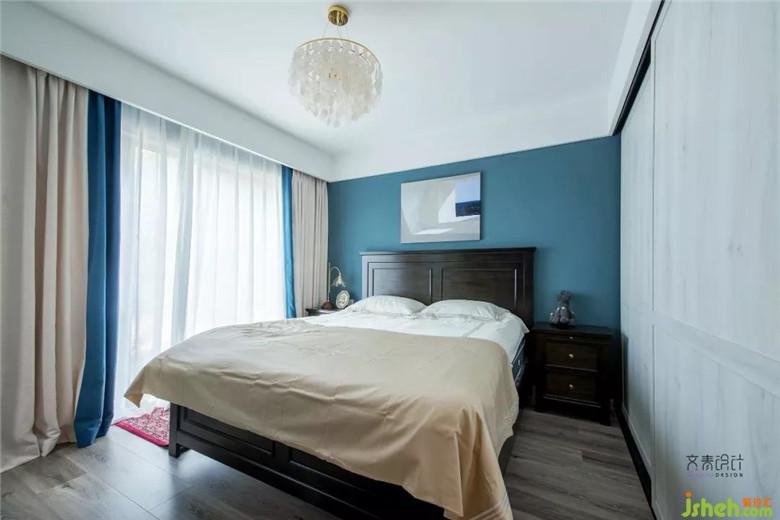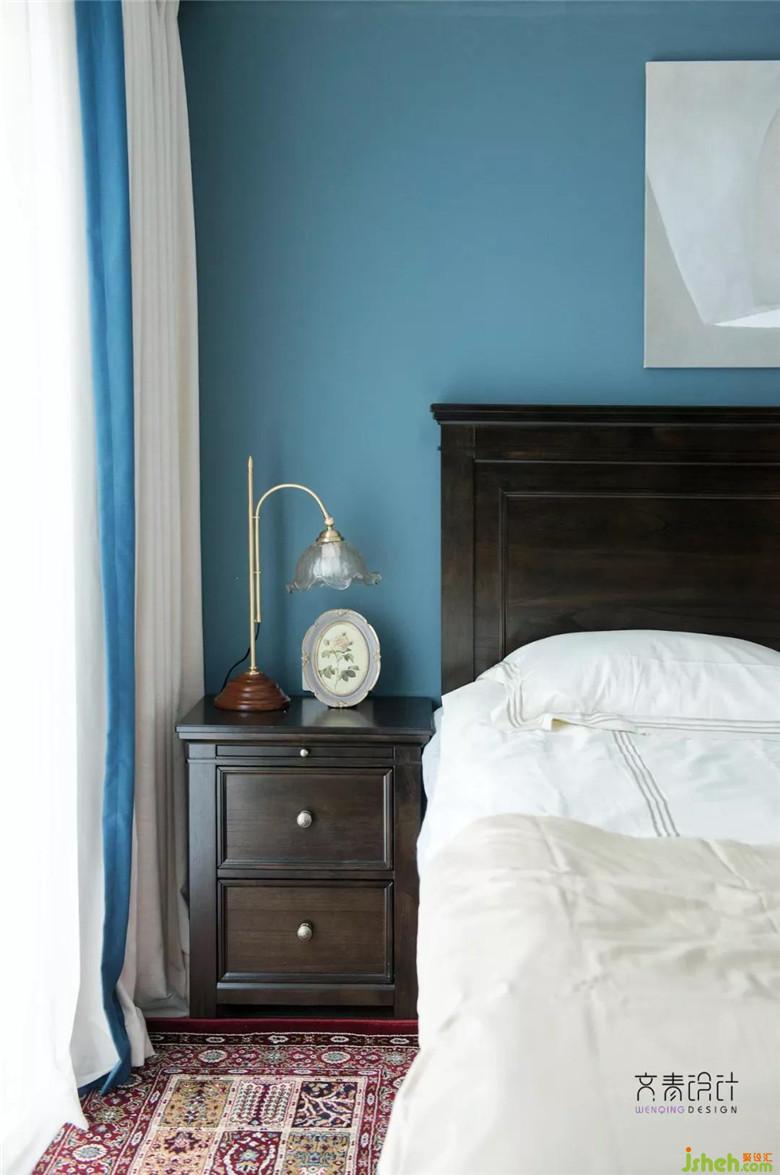 床和床头柜的组合,皆是线条硬朗,色彩稳重复古的造型。清早起床,是北美乡村的精致感。