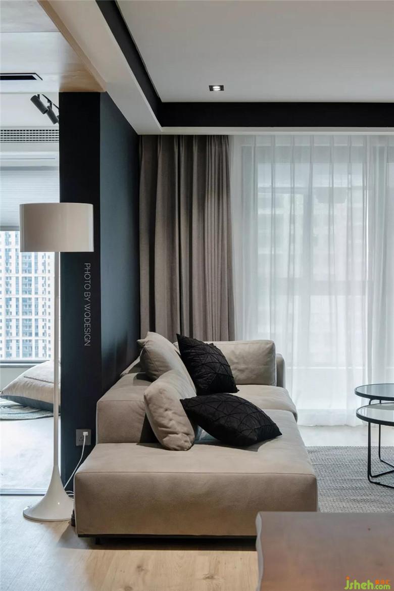 客卫和次卧的门都是隐形门,视觉上有种阶梯感,在家里看到的视觉面都是有规律的。