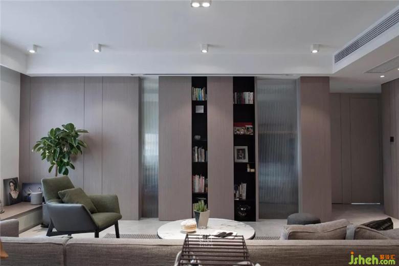 书柜一半是隐形的,一半是露在外面的。简单简洁的呈现外面,零碎的收纳到里面。