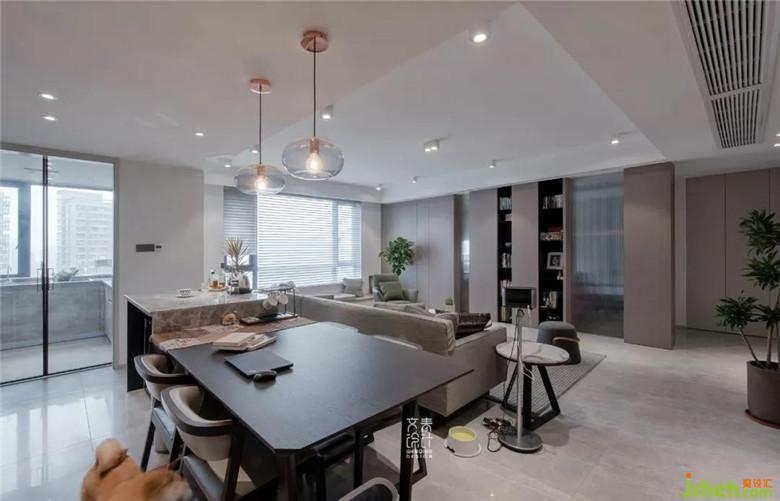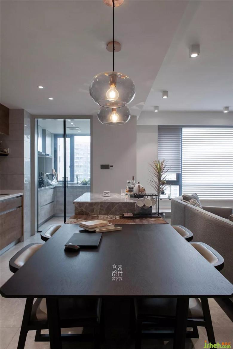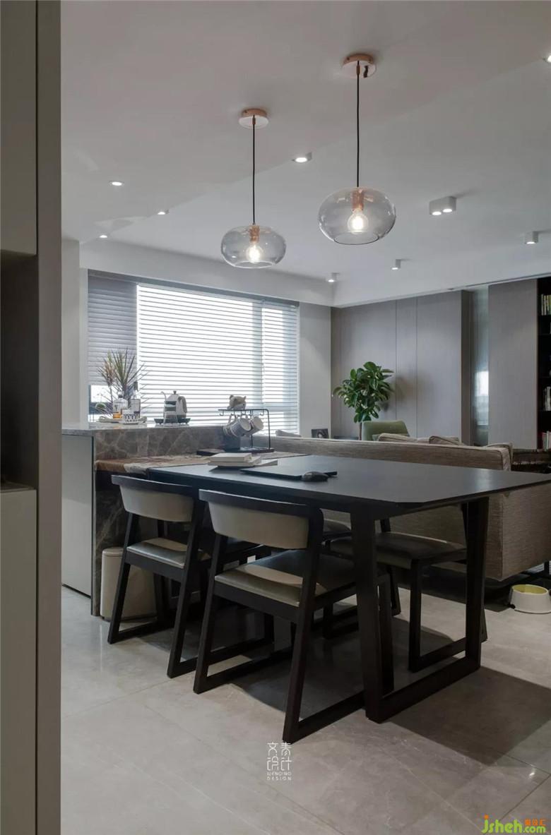 装修公司对餐桌椅的高度和沙发单椅的体量控制下,客餐厅的交互丝毫不会有干扰。