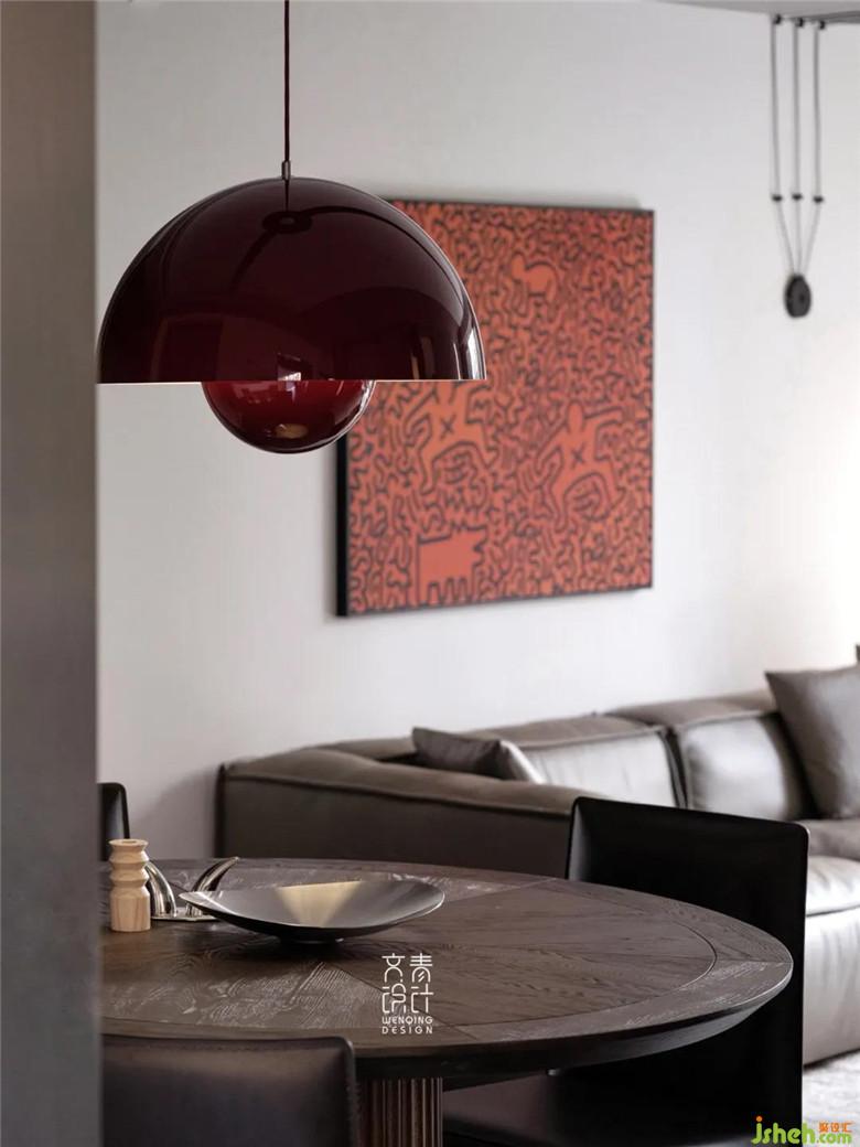进门左手边就是餐厅,圆餐桌自带家庭聚餐属性,这一方小小领域定是家中烟火气最为浓郁的。
