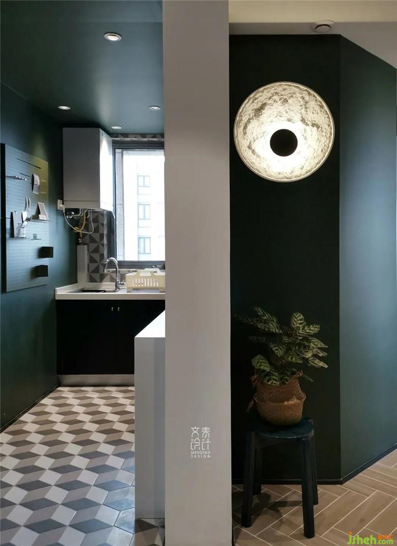 入户门进来第一眼看到的是一堵异形墙,装修公司的设计师用一盏灯将人带入了无限的遐想——整个家似乎化身变色龙,你是什么“颜色”,家也就“变成”什么“颜色”。