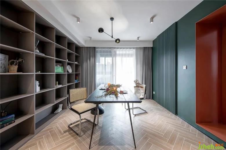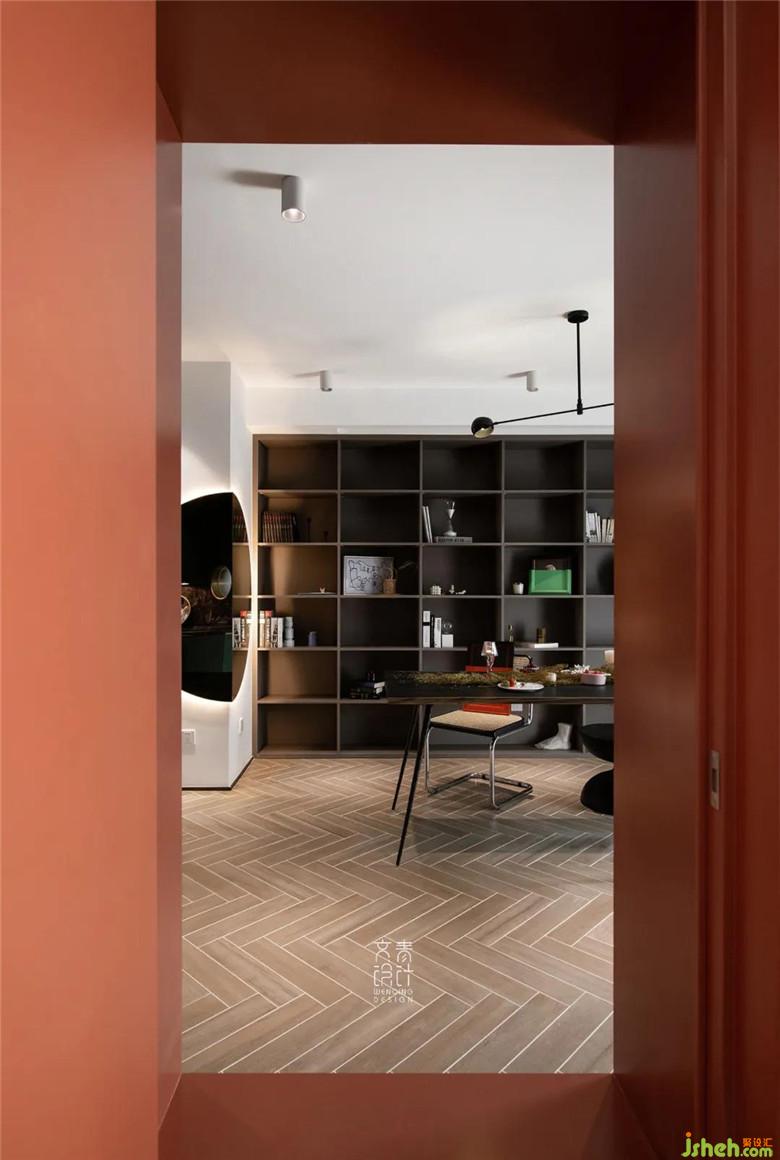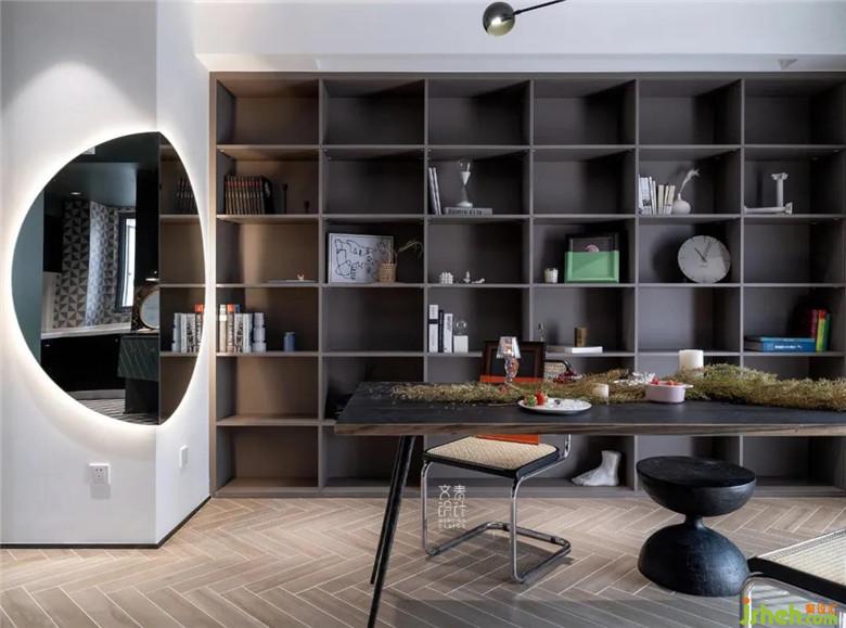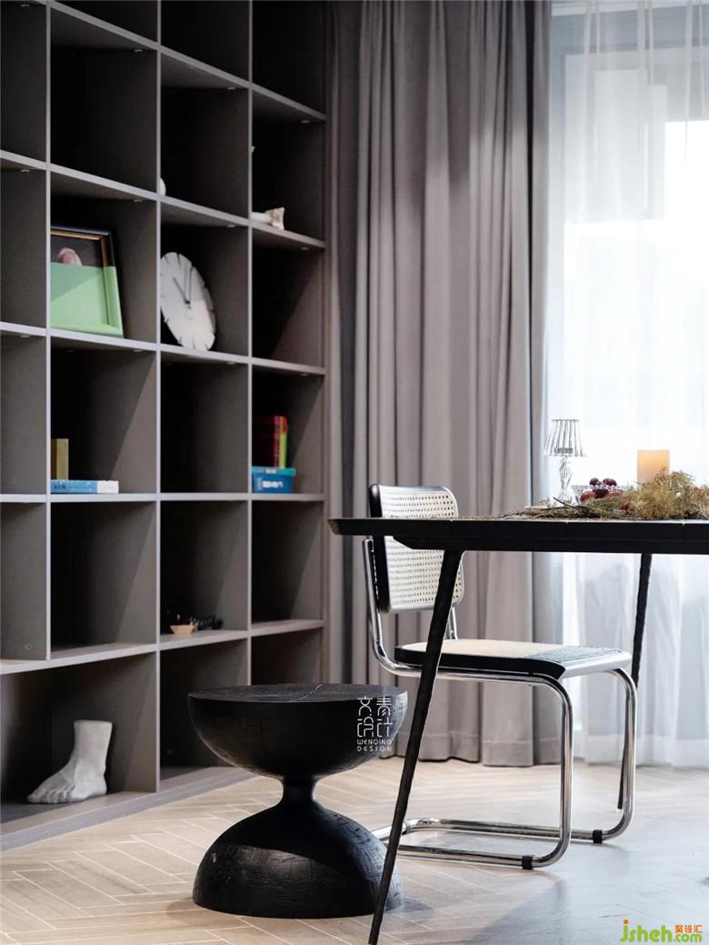 走进客厅你会发现,这似乎有更像书房,“顶天立地”的柜子只要摆上几本藏书,客厅摇身一变就成了休闲办公的书房,这就是业主最喜欢的生活方式。