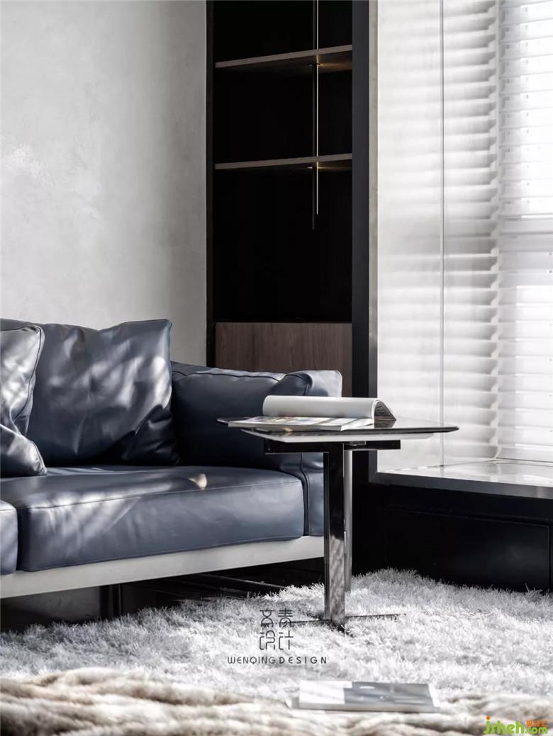 沙发背景墙右侧装修公司设计了一个便利收纳柜,可以当书架,也可以当展柜,离落地窗又近,特别适合阅读区域。