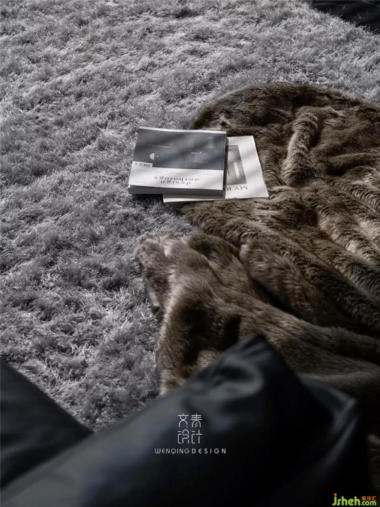 静谧、硬朗,甚至是冰冷的确是主基调,但也不仅仅只是这样。透过百叶柔和的阳光,绵软丝滑触感的地毯,角落影影约约漫出的灯,这些组合就像冬日木屋的篝火,一丝一丝去浸润,而后温暖。