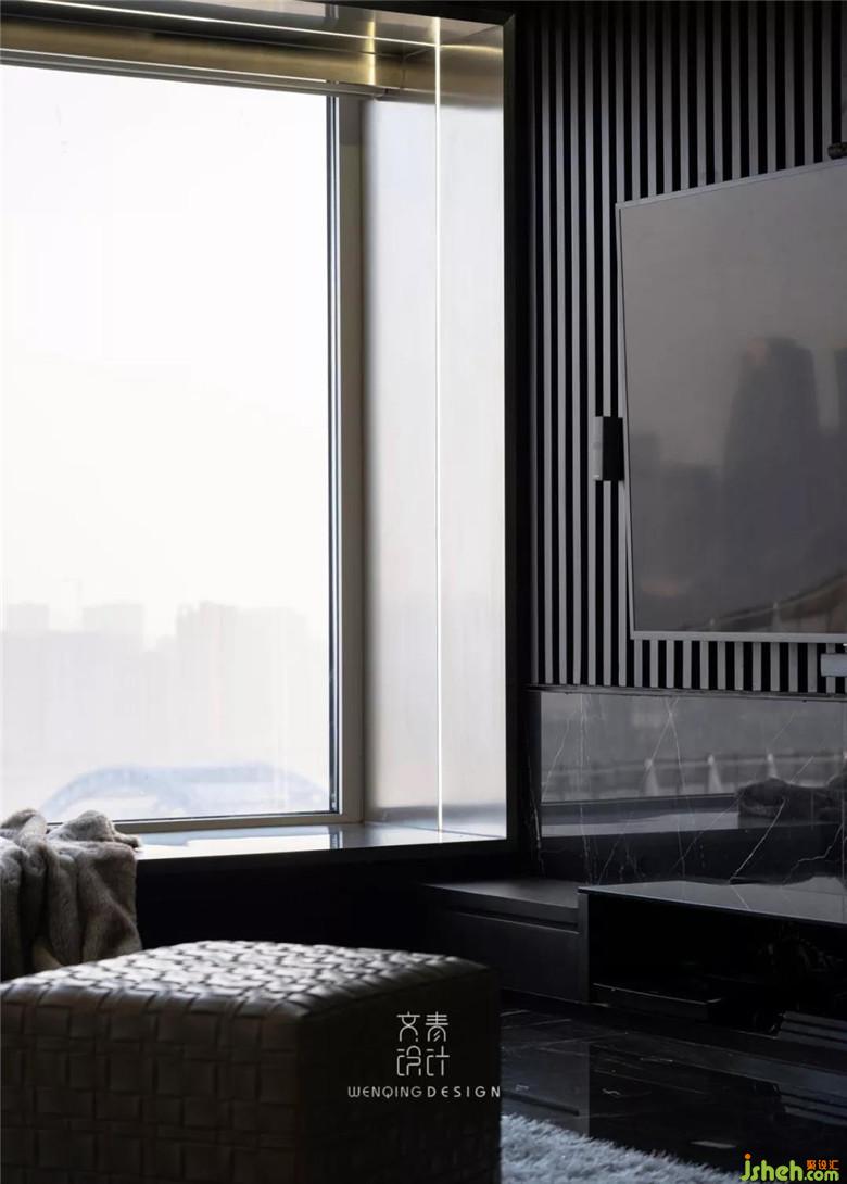 飘窗也是用不锈钢包边,一圈包边里还镶嵌了一圈氛围灯带。