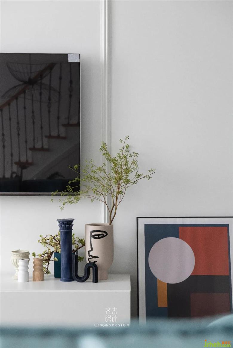 因为整体色调装修公司都是以简约的白色为主,这恰巧为空间创造了很好的画布,地毯的明黄和小饰品组成的每一个小色块,在画布上都显得格外纯粹。