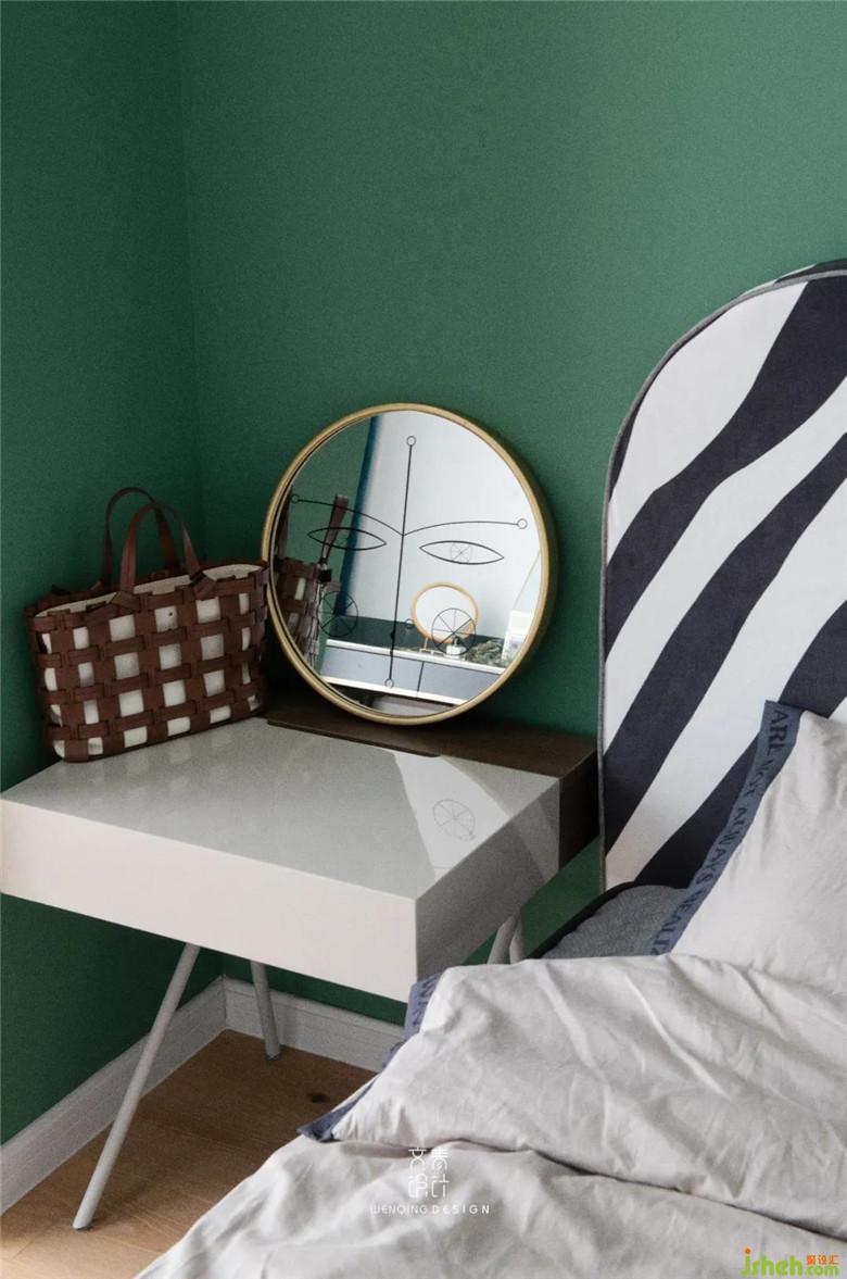 床头柜舍弃了传统笨重的造型,选用了轻巧的细腿床头柜,暗藏的储物空间满足日常收纳,视觉上也给人较为轻盈的感觉。