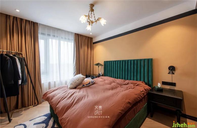 猫咪的“豪华套房”也是通往主卧的必经之路,卧室大面积使用了姜黄色,低饱和度的色彩更能让人放松身心,yiko作为服装设计师,卧室最不能少的就是衣架,每日睡前必想:“明天该穿哪套迎接新生活呢?”