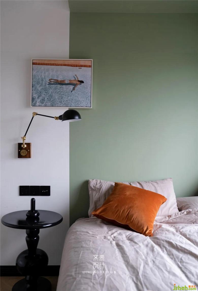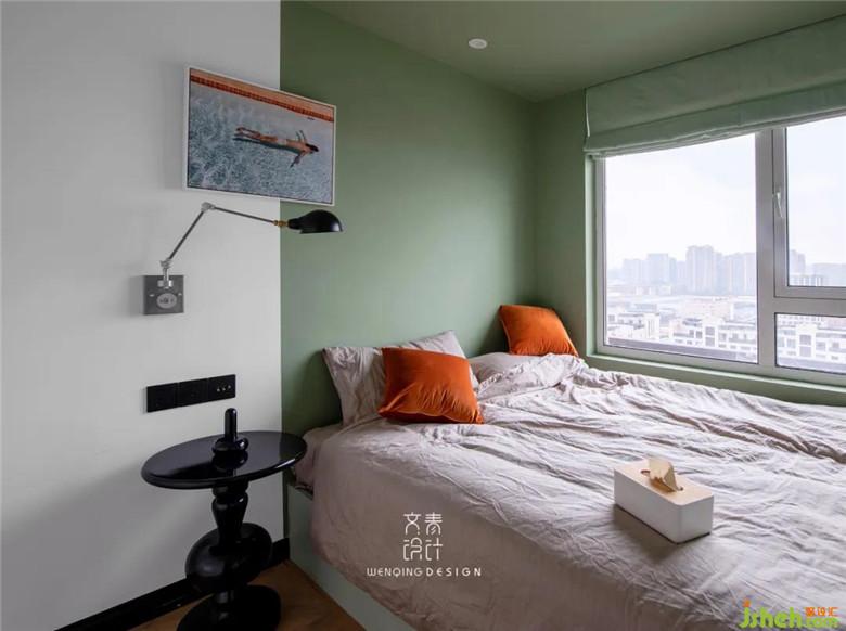 装修公司将次卧的一半空间刷满了绿色的乳胶漆,绿色是绽放在春天的芭蕾,让我们在快节奏的生活中,也能感受到大自然的生命力。分界线营造层次感的同时,给人一种错层的视觉果。