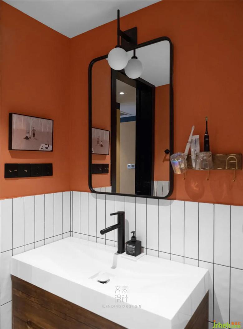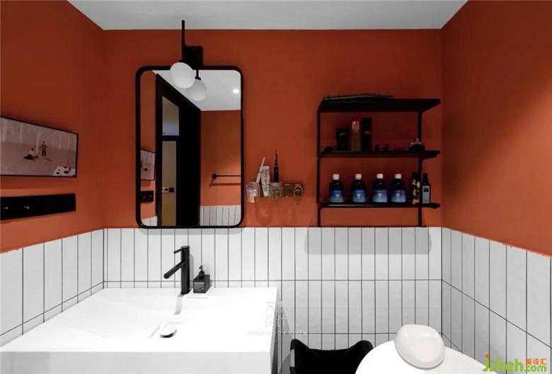 内卫运用了作为最复古最潮流的大地红,并用最百搭的黑白两色来平衡空间,现代与复古之间的切换就是这么自由。