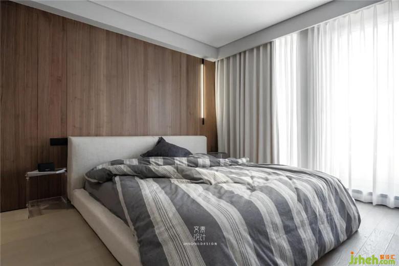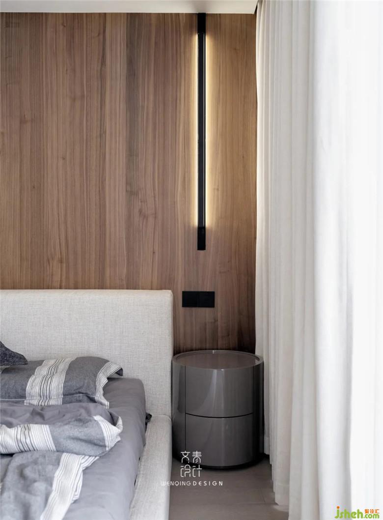 为了让次卧空间更加开阔,我们将卫生间藏了起来,床靠背的隐形门推进去就是次卧的内卫,关上隐形门也能与整个床靠背融为一体,毫无违和感。