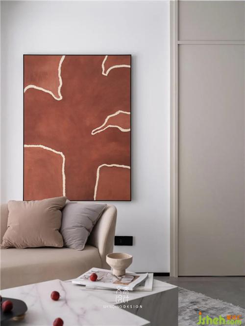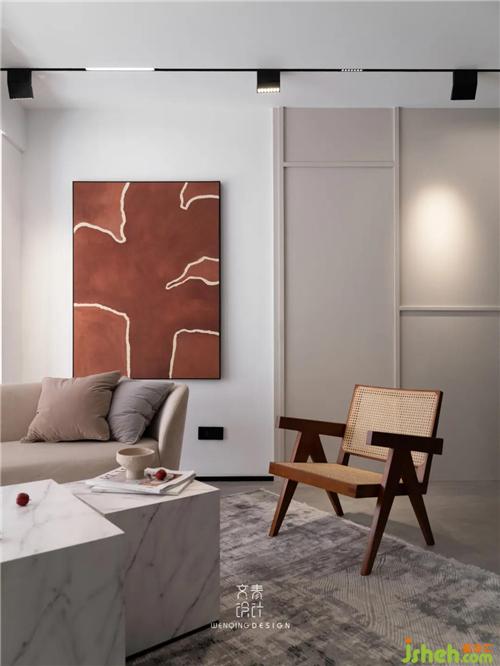 客厅采用温暖的浅咖色作为整体基调,让人一进屋就能感受到整个家的温馨。放置充满艺术趣味性的昌迪加尔单椅,犹如在空间中放了催化剂,将趣味的装饰画也连接起来,温馨与艺术趣味性,在这一刻就是一体。