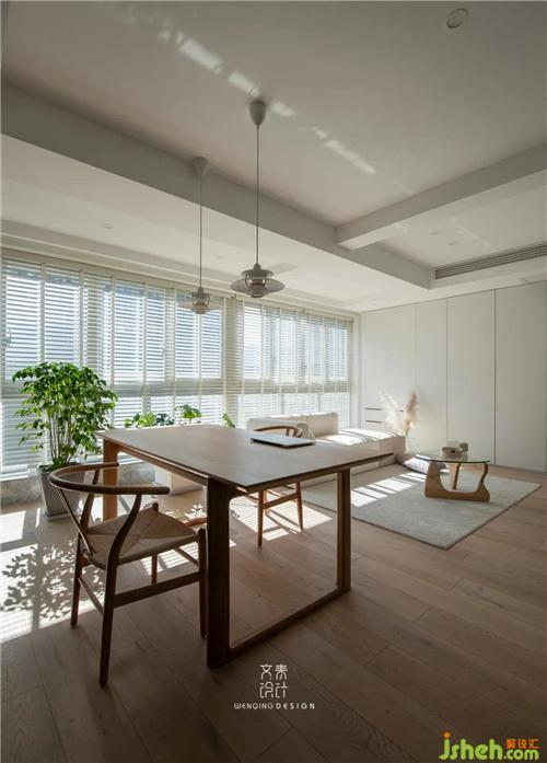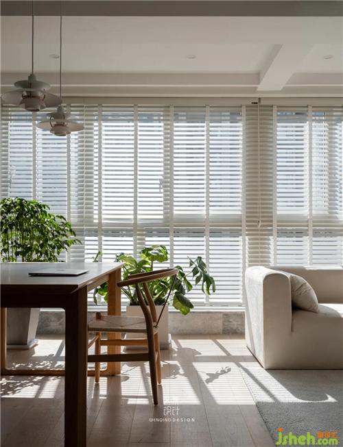 一桌两椅妥妥满足单人soho需求,当办公疲倦时也能欣赏下书桌旁的绿植角,舒缓眼睛放松心情。