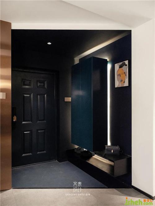 这套案例有别于传统的入户玄关空间,我们采用从地到顶湖蓝色的乳胶漆,视觉上塑造了一个独立的玄关空间,置物架用钢板以墙而建,常用的鞋子、包包都可以随手取放,好看的同时也兼顾了实用性。