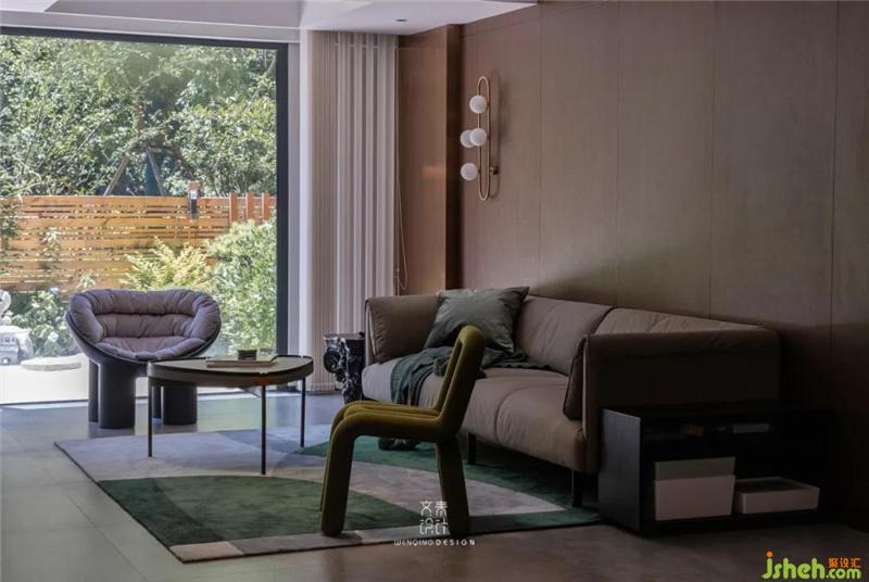 一楼客厅有着视野超好的私家花园,户型的天然优势,在设计过程中根本不用担心自然光的问题,落地窗的设计让人不错过每一分屋外景色。