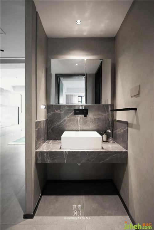 悬浮式楼梯底部暗藏灯带,光影交错之间赋予了空间动态的美感,地下室用水泥台阶衔接过渡,材质之间的交融,顺势将人带入水磨石地下室空间。