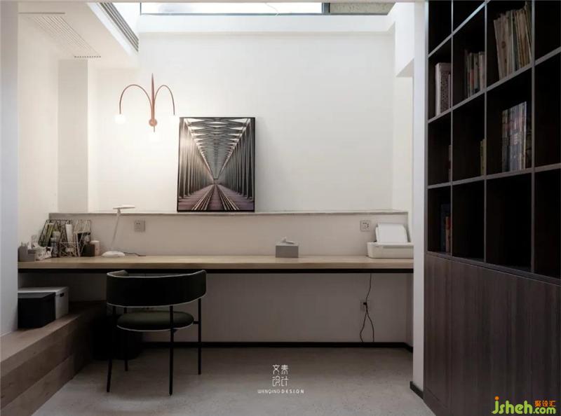 地下室工作区刚好布置在透光天窗下方,顺着台阶延伸的地台,也能供人工作之余小憩一下。
