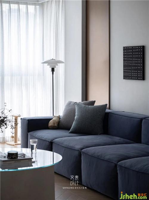 客厅将原本露天阳台包了进来,一方面是为了减少灰尘,另一方面也是为了增加室内的面积。同时猫猫的吃喝拉撒,都布置在远离生活区的阳台上,这样在家也闻不到一丝异味。