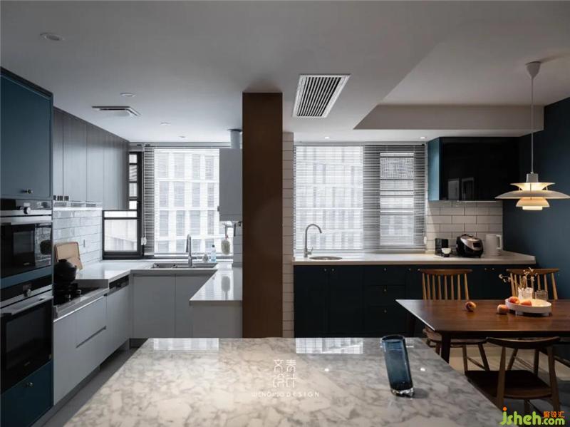 开放式厨房是业主特地提过的,这样家人在做饭的过程中,不会被孤立在厨房,在做饭的时候也可以和家人交流,甚至大家可以一起去帮忙完成餐点。