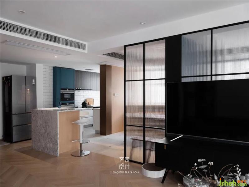 用长虹玻璃定制电视背景墙,让光线随着时间的流动,在各个空间之间穿梭,玻璃自带的朦胧滤镜,让杭州装修公司空间呈现多样化的变化及生命力。