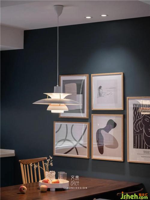 暖黄色吊灯如同落于海面的水滴,随着灯光的照射,不断蔓延、交错,由微小的元素,延伸出整个充满层次与韵律的空间。