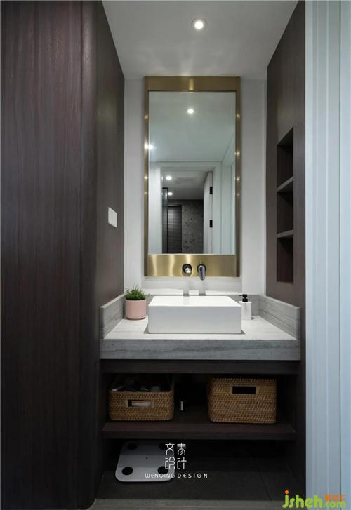 盥洗区被藏进定制柜体中,