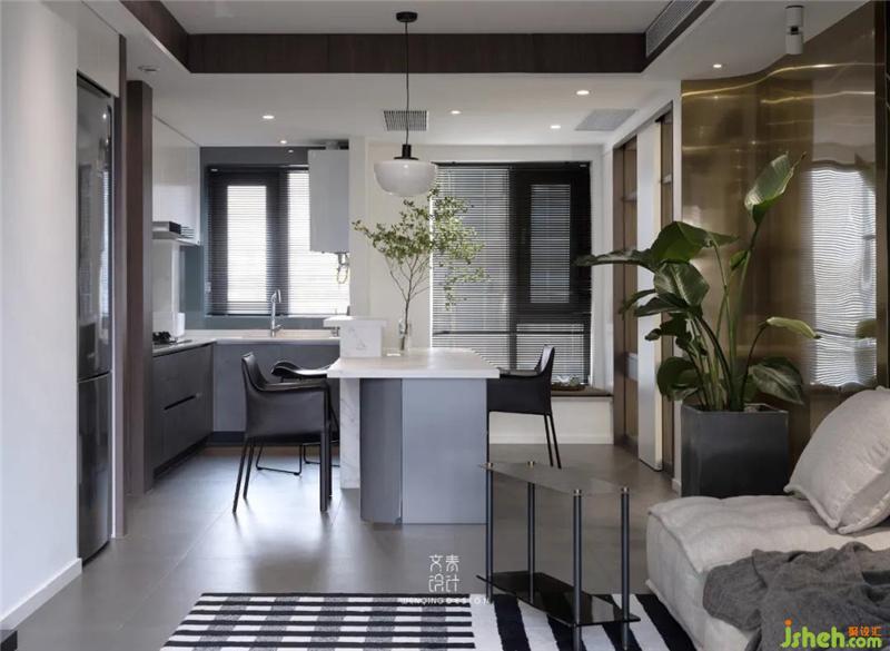 我们将餐厅、厨房、书房三个空间合并在一起,