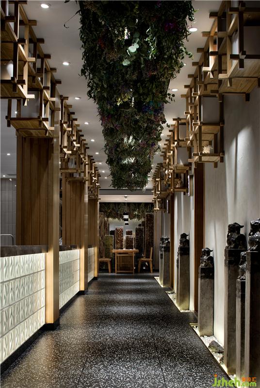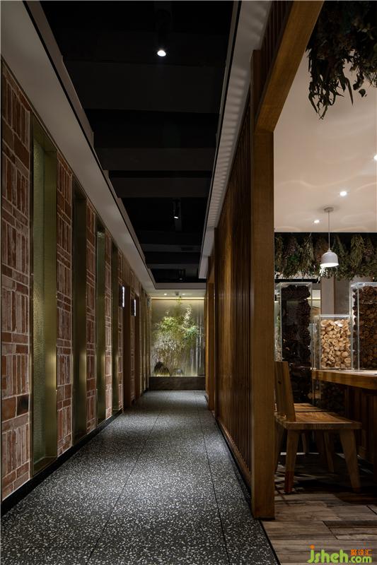 过道尽头,竹子放置空间一角,错落有致,婆娑的光影,洗不尽那记忆深处的牵念。微风徐徐,翠绿摇曳,雅致与活力尽收眼底。秉持功能性与美感的有机结合,创造出美食与空间的动态链接。