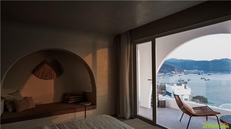 “好似有人把人间流走的美好拉回了一海里的诗意。”得益于玻璃与光影的配合,房间内独占一片浪漫海景。蜜色的余晖与粼粼的波光晃入室内,与房间内的木质香气一同在空中浮沉,度假感就在这样的氛围中变得生动起来。民宿设计多了分大理的文艺柔情,增了许圣托里尼的纯洁俏皮,山海与爱,浪漫与纯粹,全揉进这一段旅程里。