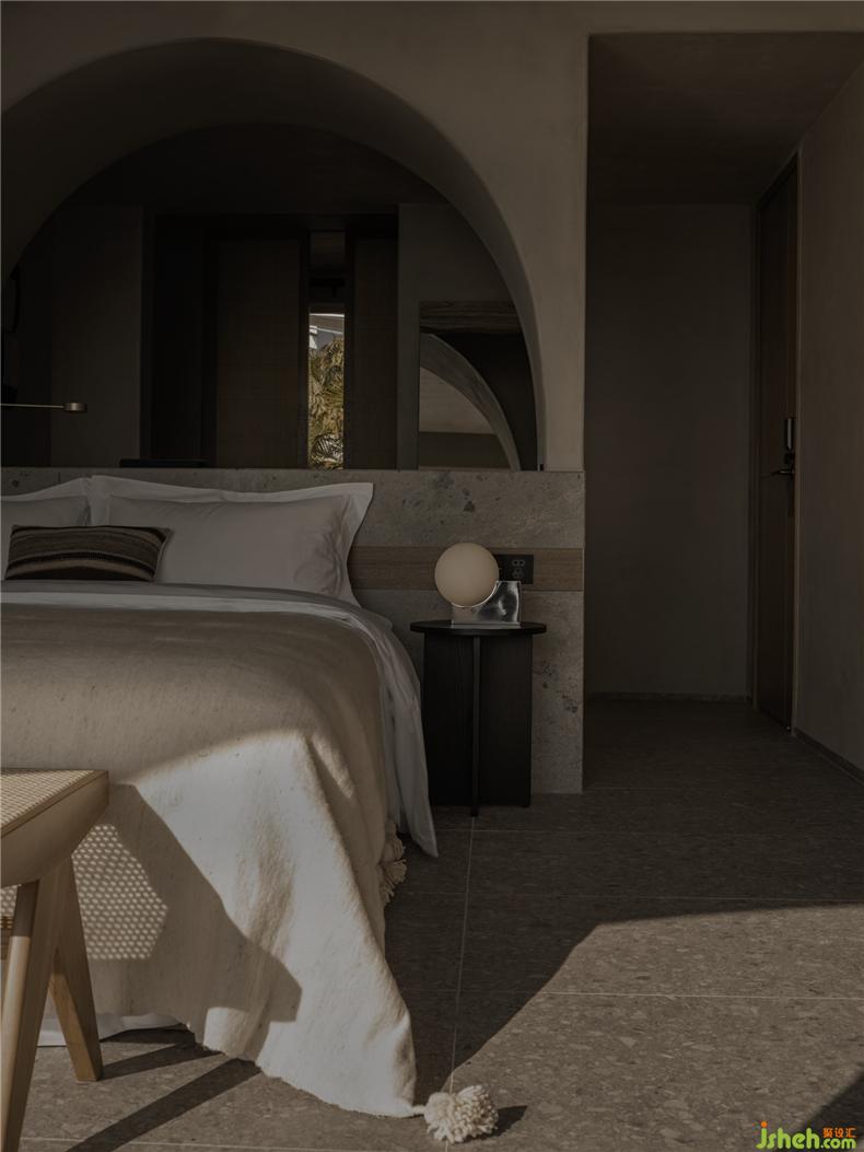 民宿设计从物质的纯粹质感中,获得自然符号的灵感,将质朴的物件、窗外的景物与跳动的光影相融合,生发出令人惬意与松弛的感触。藤条编织的草帽与家具,泥土纹理的亚麻织物,有质感的当地石头,或是出现即抓住人眼球的红色木凳,为赤裸的空间,注入复古的温柔与自然的生机,创造出一种悠闲奢华的氛围。它们带着远山的悠扬,与乔木的芬芳,民宿设计为每位客人创造了一个放松的私人庇护所,将人文情怀与空间质感相融合,达到功能与美学的完美统一。
