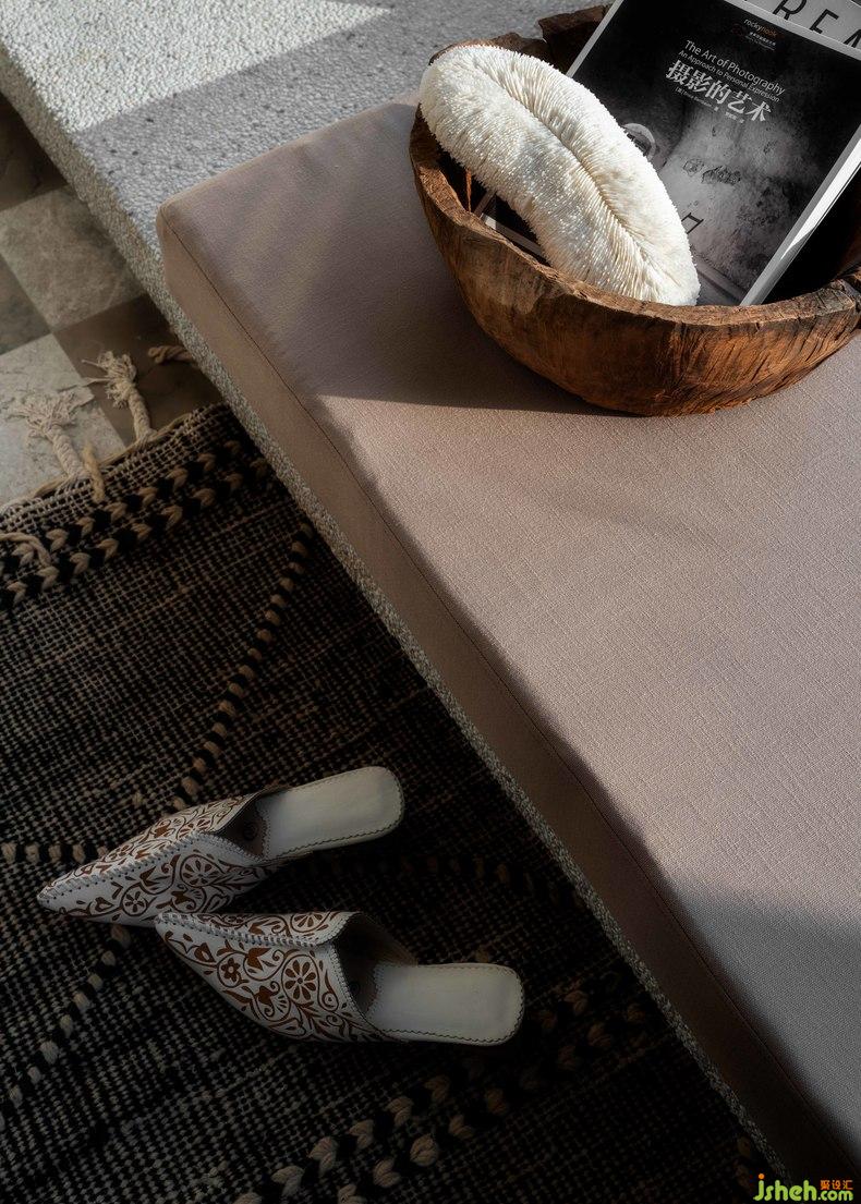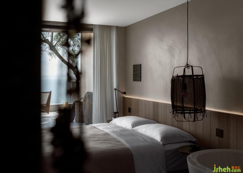 建筑的精神也是心灵境界的呈现,蜚声将沉稳冷静寓于材质肌理之中,酒店设计创造出简白的空间,给人素雅与质朴的自然感。大面积落地窗的运用,从外向内引入更多的自然幻想,流动萦绕的光影,是一种看得见的建筑之美。