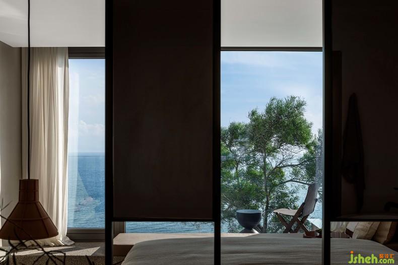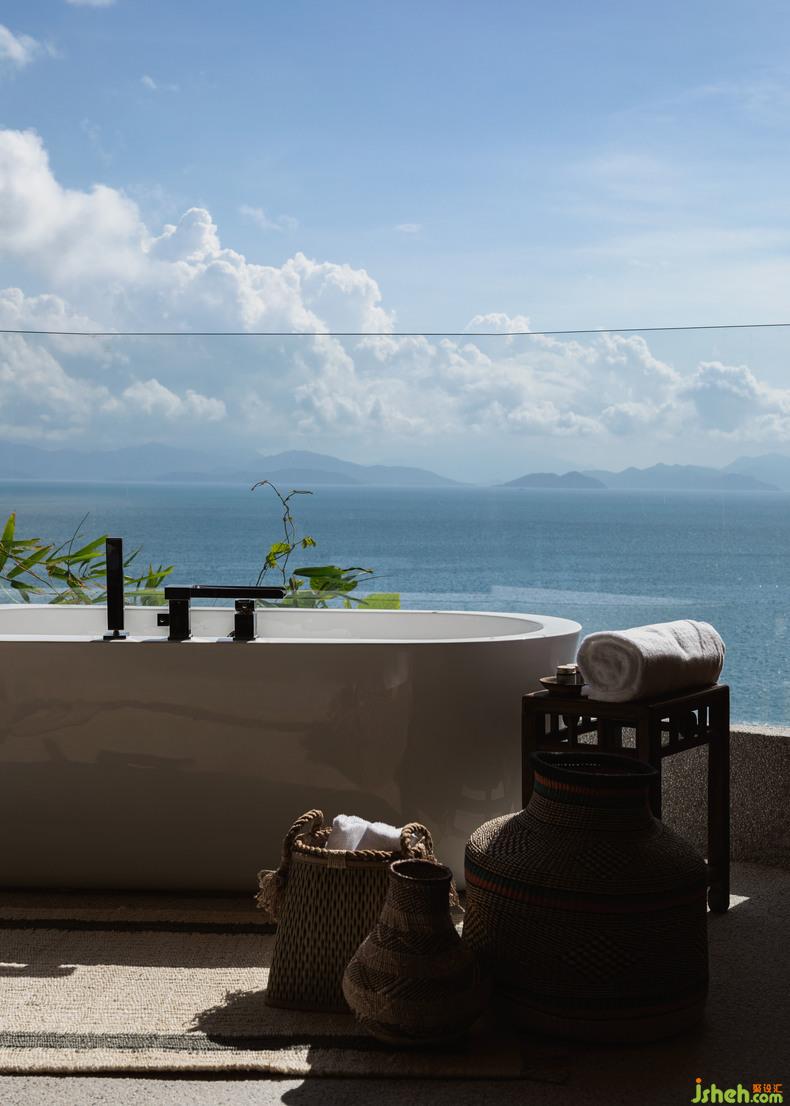 房间阳台是另一种情绪,它将空间局限打破,向天空、向海洋延伸。清风与光照毫无保留地在空间中流动,占据空间的每一个角落,与抢镜入画的山树一同,构建起新的空间秩序。视觉的高度与层次随着每一次呼吸,酒店设计得到了立体化与丰富。身体在自然光景的滋养中,与空间场域发生了千丝万缕的联系。对于生活的美好,便在光影交织、一山一树的艺术意境中,得到了全方位地感知。