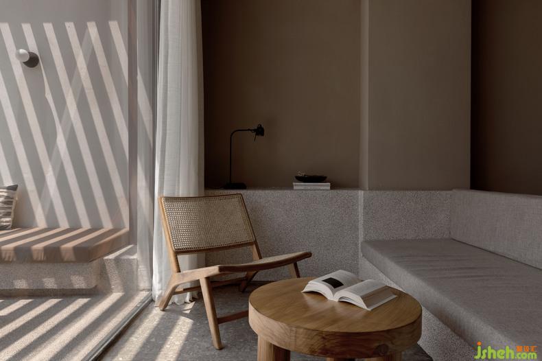 视角随着光影延伸至海平面,将粼粼波光纳入整个房间。房间的拙朴在自然的点映之下,也透着些柔软的娇憨。向外看去,目之所及的波浪温柔起伏,微风带着海盐味轻抚过脸庞,仿佛被大海拥抱;绕屋一圈,热带绿植,藤编家具,纺织抱枕,岛屿原石,与原木家具一起,装饰出屋内的质感与格调。内外皆是景,却又在自成一体的同时,融为一体。
