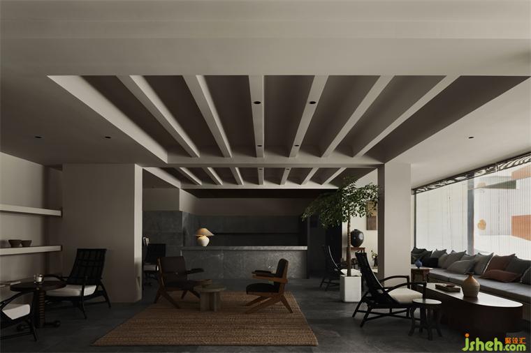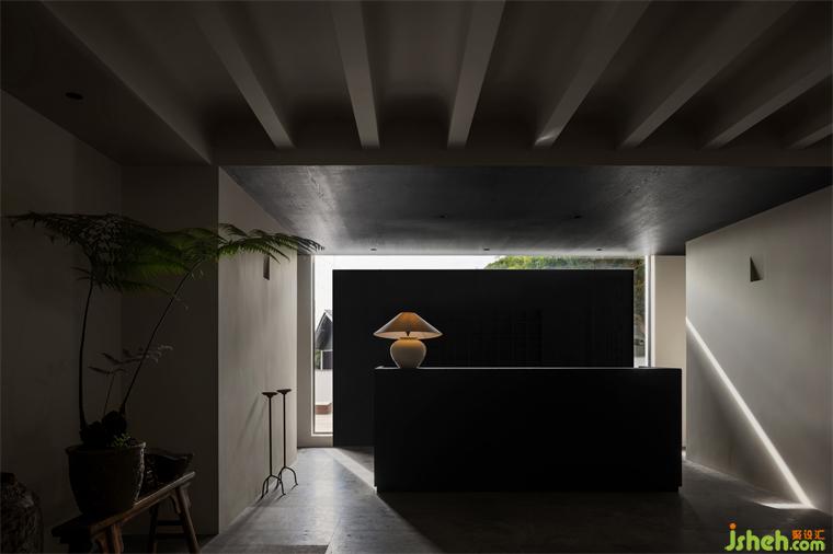 山间建筑的外在有着平和的松弛感,无意于强调艺术的笔法,将设计的亮点谦让给室内。深圳民宿设计接待空间由正中的门一分为二,应承不同人的需求。隐去的功能区的边界,由室内领域自成的不同气质所承担,触不到,却足够分明。