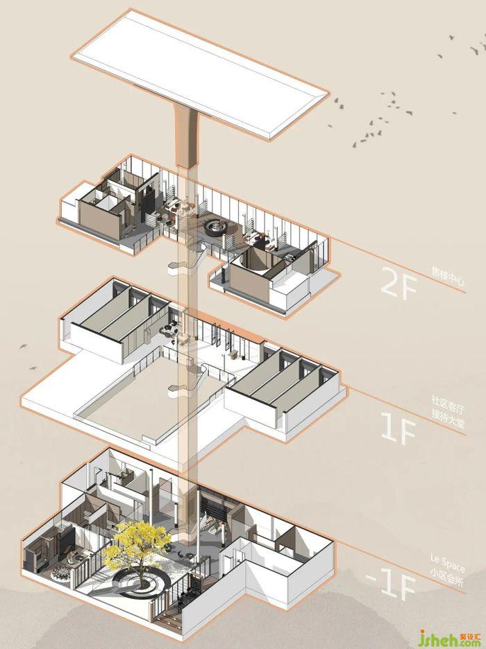 前期作为销售空间,后期会所将直接融入城市肌理与公共日常生活,社区会所设计更加无缝衔接地成为社区永久共享场域,应运而生的“LE SPACE”——是一种不同以往的全新的社区空间。