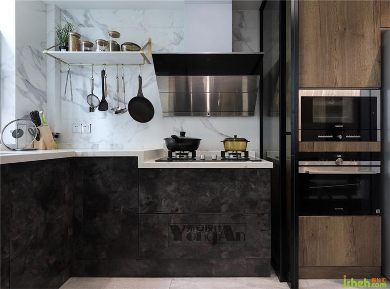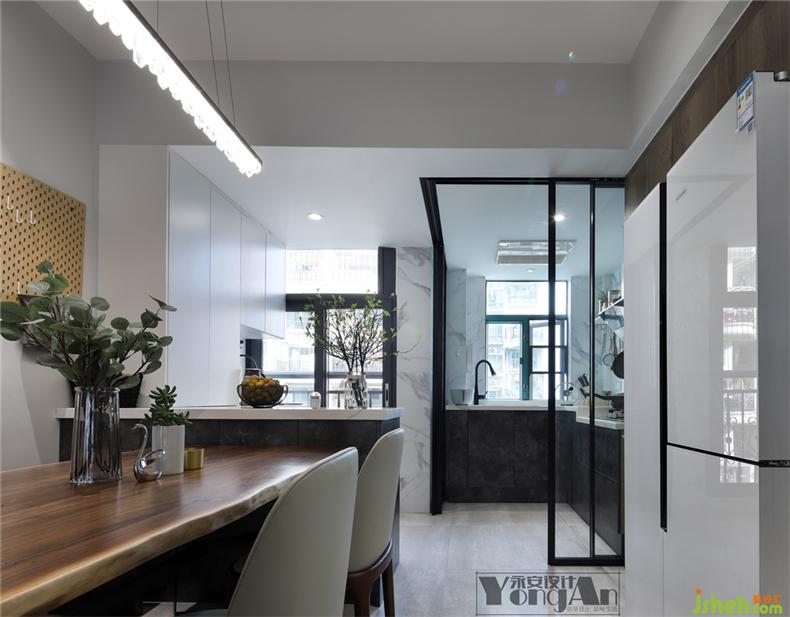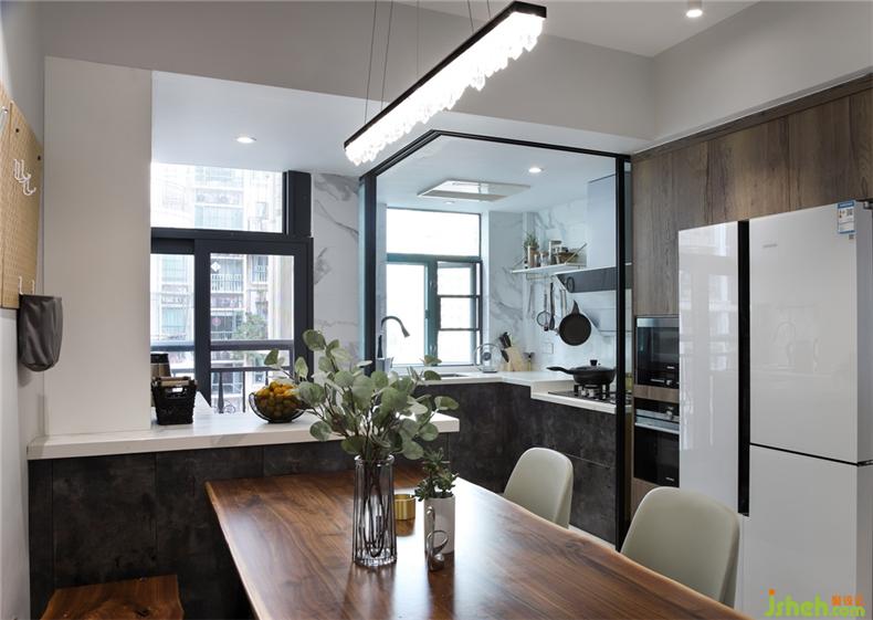打造进退得宜的厨房空间,敞开时视觉上明亮宽敞,又能在使用时阻隔油