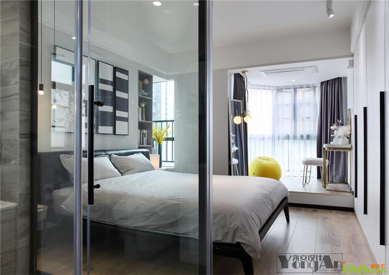 卧室营造了舒缓平和的睡眠氛围,抬高地面隔出小平台,增加一点独立性,开放且包容。室内设计师