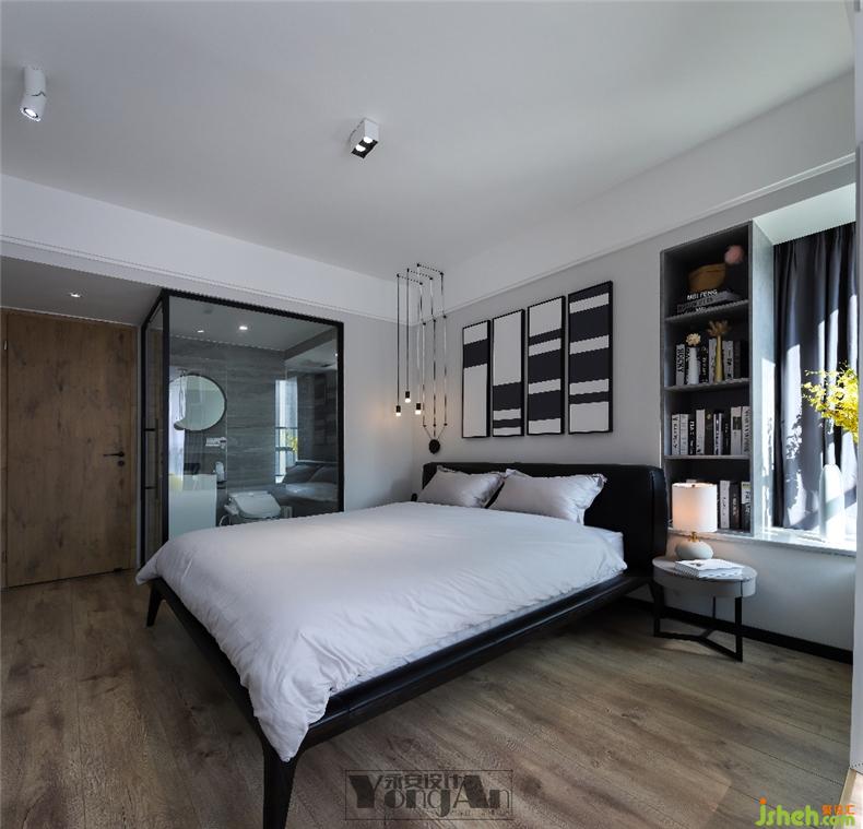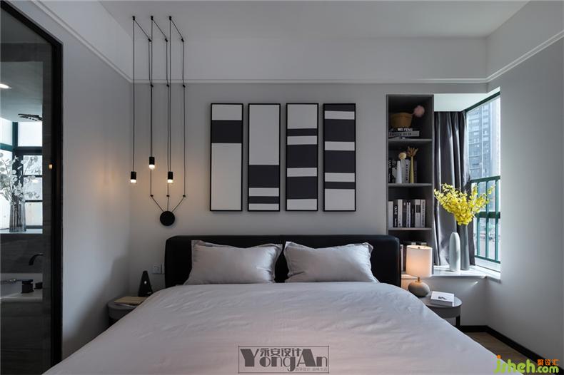 黑白与木色的卧室,现代感里融入自然的气息。