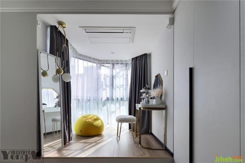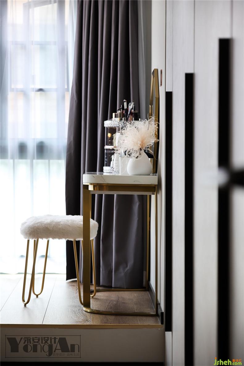 拿取方便的大衣柜,衔接化妆台,提高梳妆打扮的便利性。